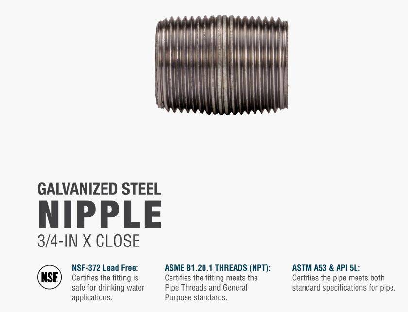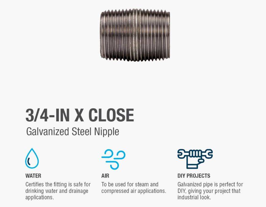 Galvanized nipples and pipe offer a trusted and easy method of transporting plumbing mediums. General uses for this product are for transporting potable water, compressed air, drainage or to create your own DIY projects. This class of pipe is designed for use with other galvanized fittings.