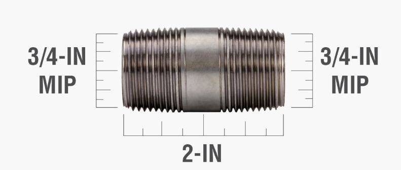 2 in. x 3/4 in. Steel Galvanized Pipe Nipple - Threaded, Schedule 40, 1-Pack