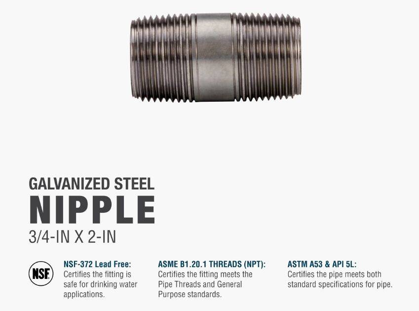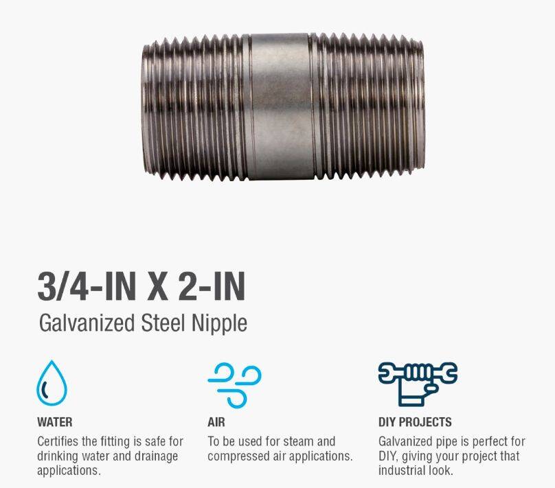 Galvanized nipples and pipe offer a trusted and easy method of transporting plumbing mediums. General uses for this product are for transporting potable water, compressed air, drainage or to create your own DIY projects. This class of pipe is designed for use with other galvanized fittings.