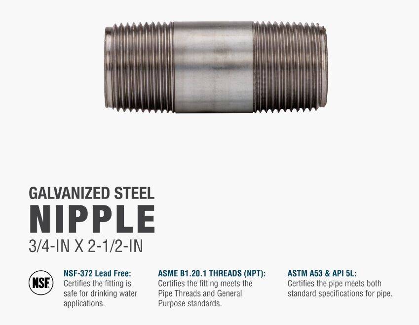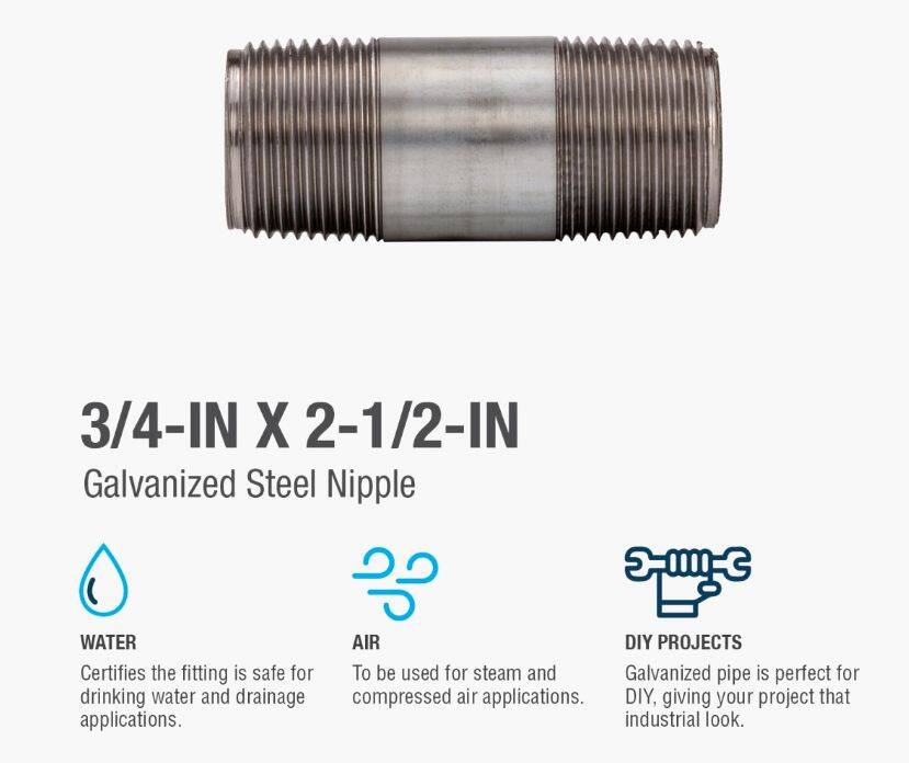 Galvanized nipples and pipe offer a trusted and easy method of transporting plumbing mediums. General uses for this product are for transporting potable water, compressed air, drainage or to create your own DIY projects. This class of pipe is designed for use with other galvanized fittings.