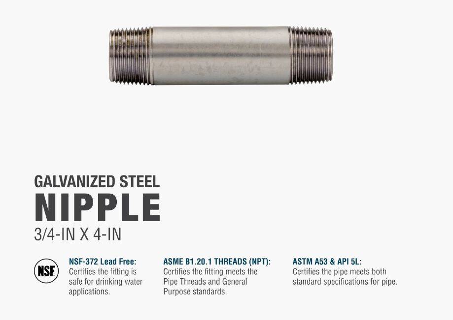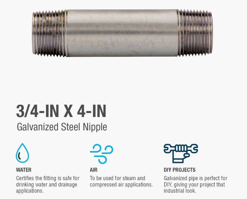 Galvanized nipples and pipe offer a trusted and easy method of transporting plumbing mediums. General uses for this product are for transporting potable water, compressed air, drainage or to create your own DIY projects. This class of pipe is designed for use with other galvanized fittings.