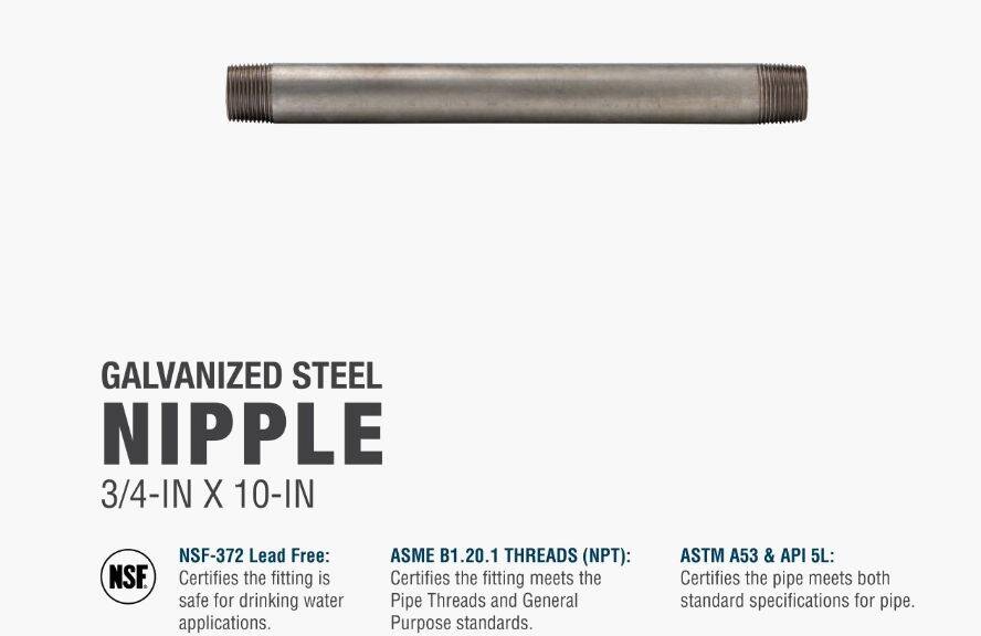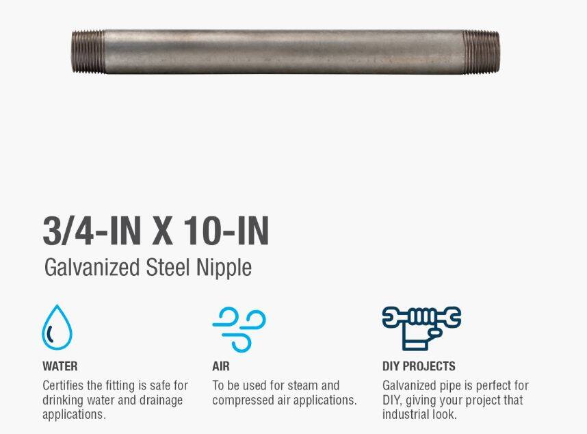Galvanized nipples and pipe offer a trusted and easy method of transporting plumbing mediums. General uses for this product are for transporting potable water, compressed air, drainage or to create your own DIY projects. This class of pipe is designed for use with other galvanized fittings.