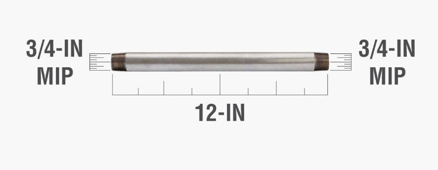 12 in. x 3/4 in. Steel Galvanized Pipe Nipple - Threaded, Schedule 40, 1-Pack
