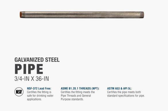 36 in. x 3/4 in. Galvanized Steel Pipe - Threaded, Schedule 40, 1-Pack
