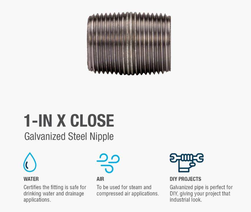 Galvanized nipples and pipe offer a trusted and easy method of transporting plumbing mediums. General uses for this product are for transporting potable water, compressed air, drainage or to create your own DIY projects. This class of pipe is designed for use with other galvanized fittings.
