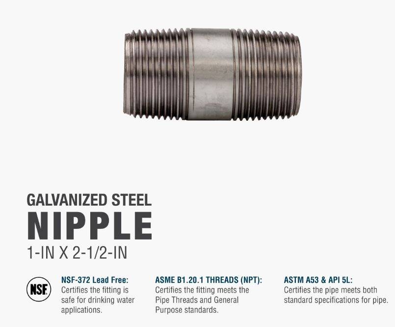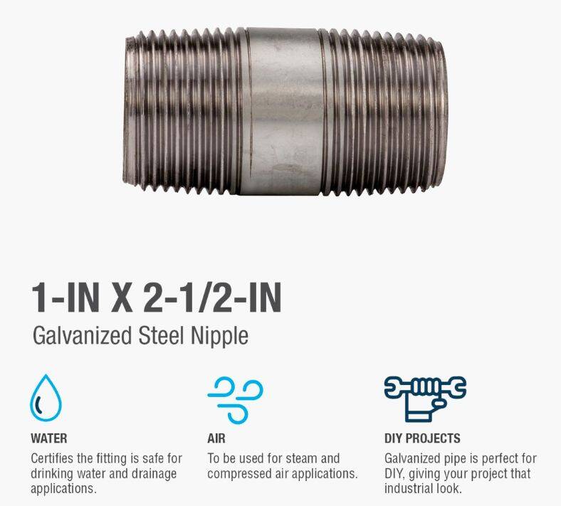 Galvanized nipples and pipe offer a trusted and easy method of transporting plumbing mediums. General uses for this product are for transporting potable water, compressed air, drainage or to create your own DIY projects. This class of pipe is designed for use with other galvanized fittings.