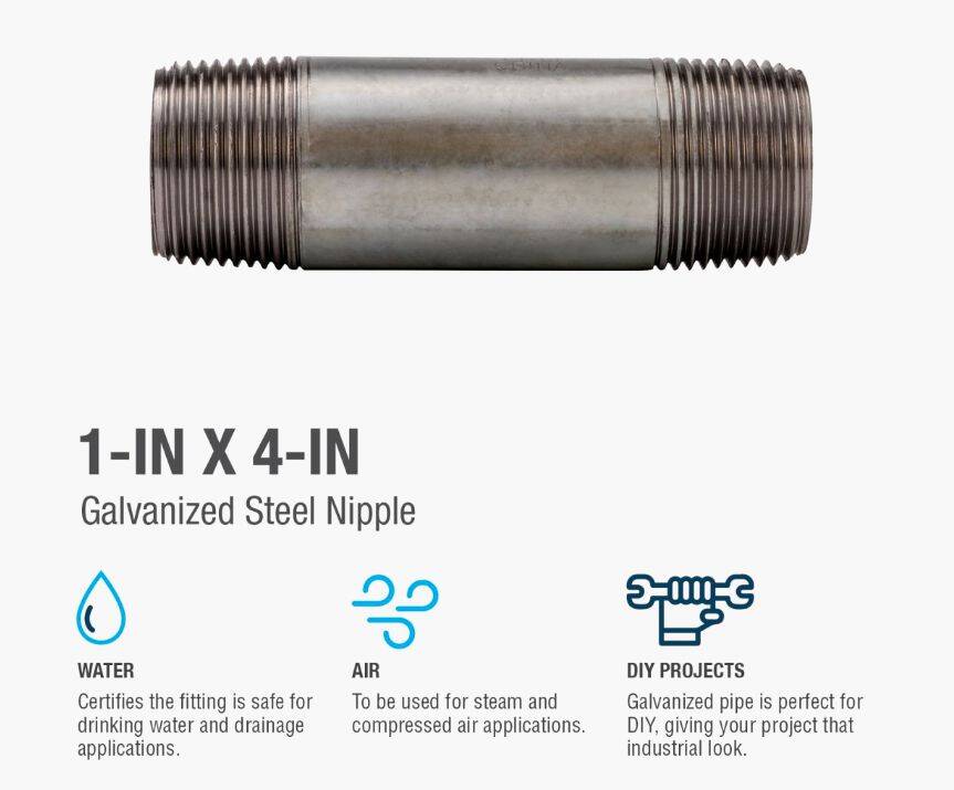 Galvanized nipples and pipe offer a trusted and easy method of transporting plumbing mediums. General uses for this product are for transporting potable water, compressed air, drainage or to create your own DIY projects. This class of pipe is designed for use with other galvanized fittings.