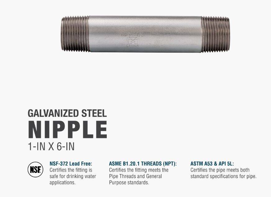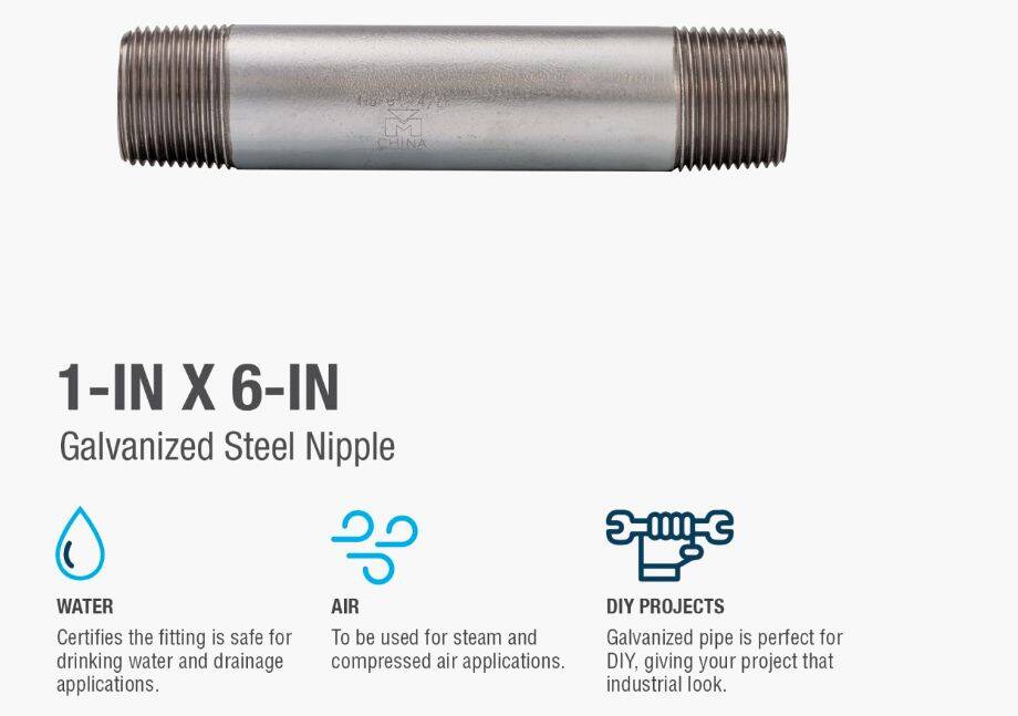 Galvanized nipples and pipe offer a trusted and easy method of transporting plumbing mediums. General uses for this product are for transporting potable water, compressed air, drainage or to create your own DIY projects. This class of pipe is designed for use with other galvanized fittings.