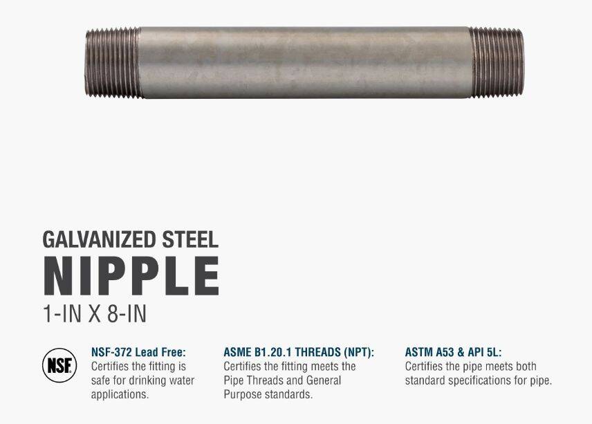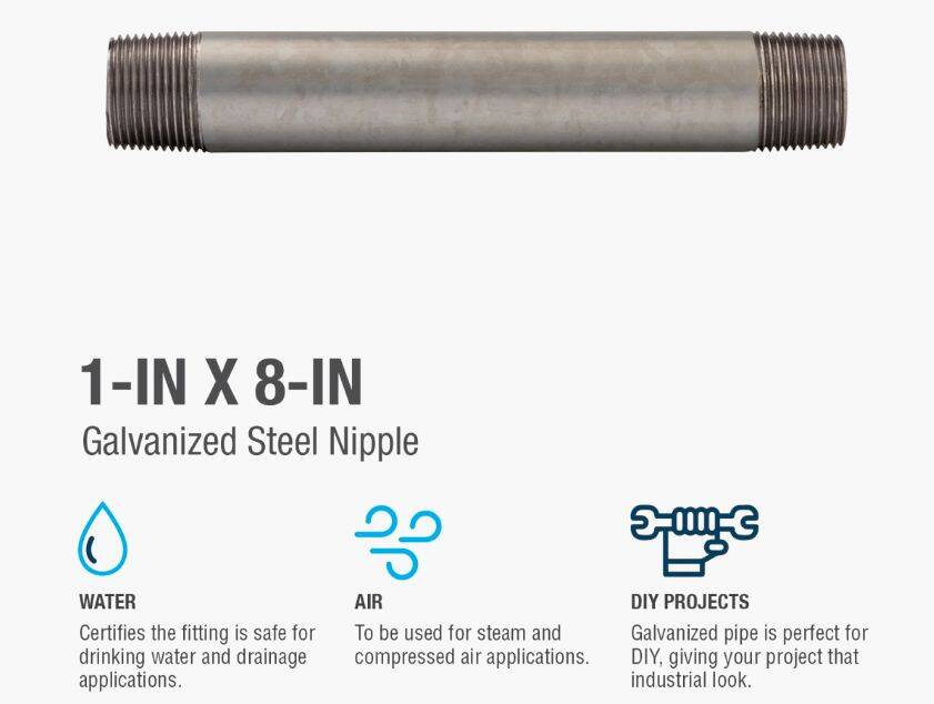 Galvanized nipples and pipe offer a trusted and easy method of transporting plumbing mediums. General uses for this product are for transporting potable water, compressed air, drainage or to create your own DIY projects. This class of pipe is designed for use with other galvanized fittings.