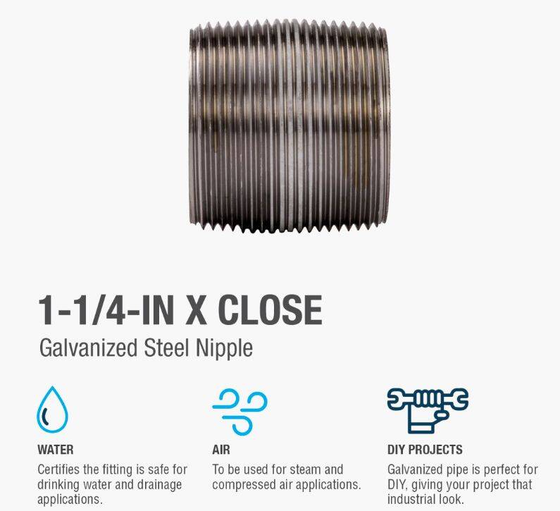 Galvanized nipples and pipe offer a trusted and easy method of transporting plumbing mediums. General uses for this product are for transporting potable water, compressed air, drainage or to create your own DIY projects. This class of pipe is designed for use with other galvanized fittings.
