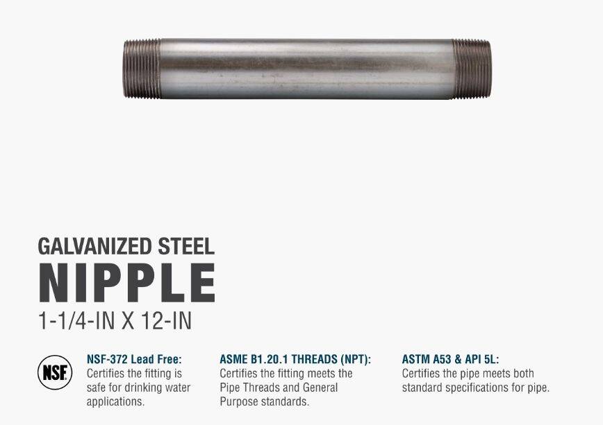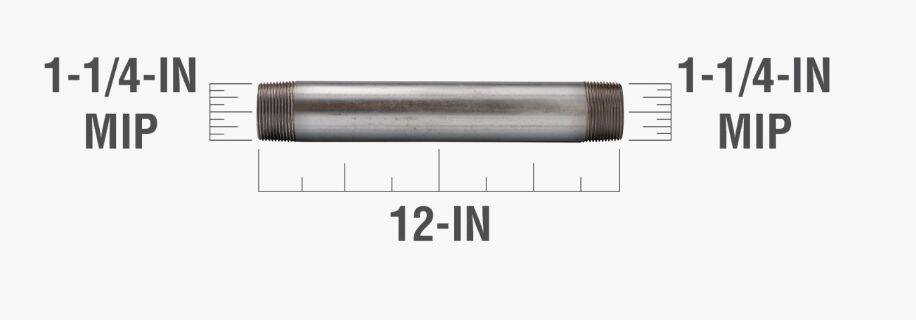 12 in. x 1-1/4 in. Steel Galvanized Pipe Nipple - Threaded, Schedule 40, 1-Pack
