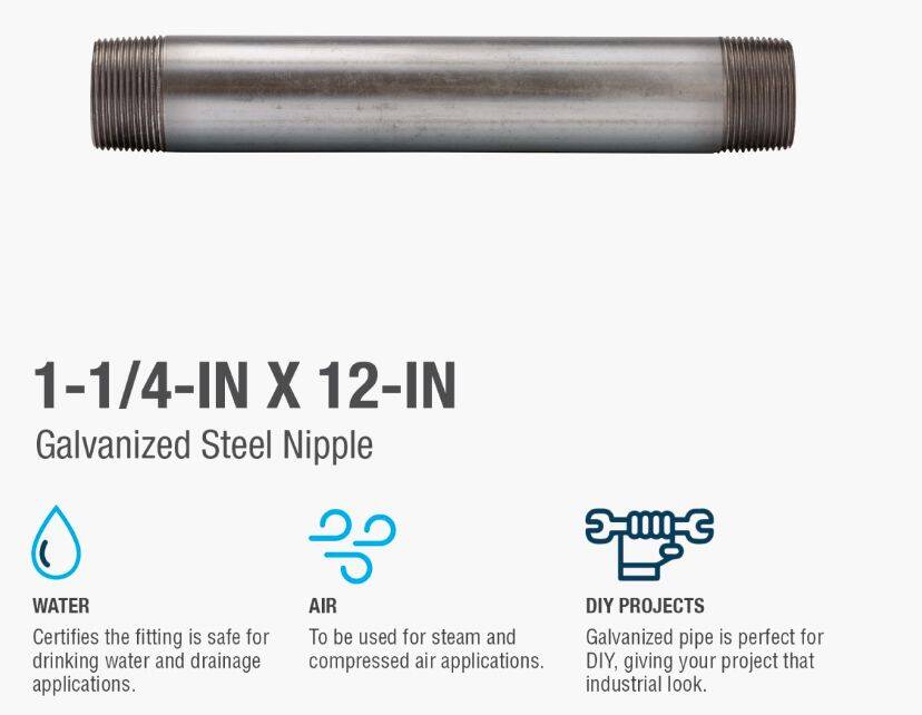 Galvanized nipples and pipe offer a trusted and easy method of transporting plumbing mediums. General uses for this product are for transporting potable water, compressed air, drainage or to create your own DIY projects. This class of pipe is designed for use with other galvanized fittings.