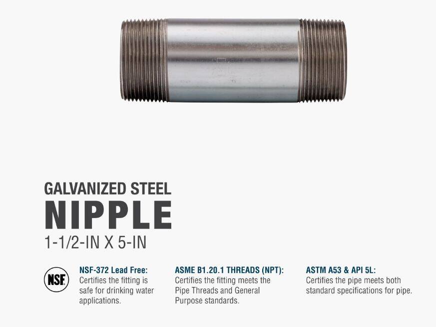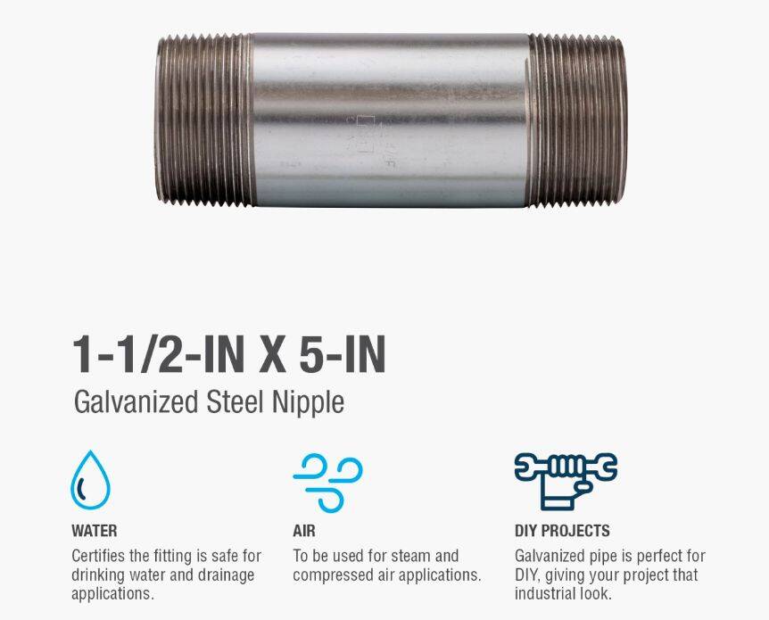 Galvanized nipples and pipe offer a trusted and easy method of transporting plumbing mediums. General uses for this product are for transporting potable water, compressed air, drainage or to create your own DIY projects. This class of pipe is designed for use with other galvanized fittings.