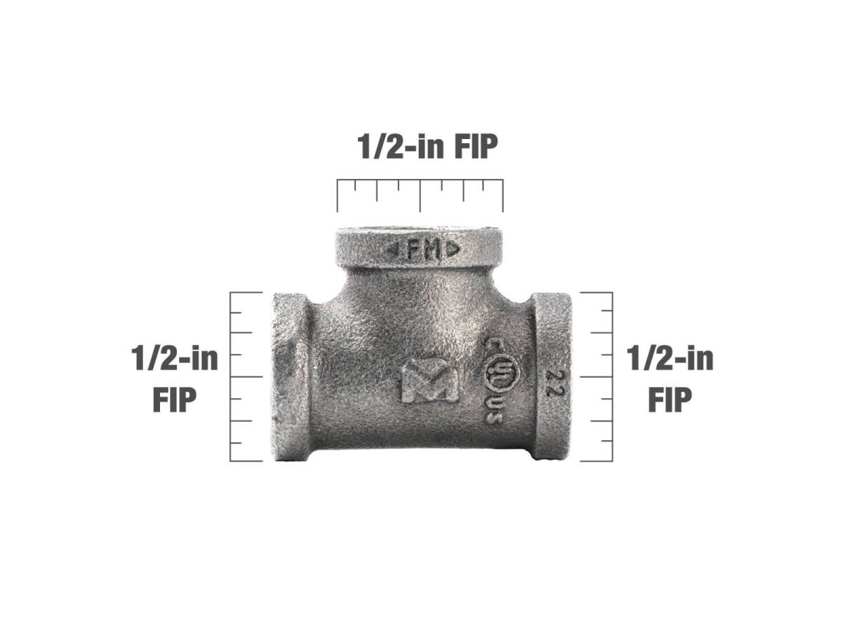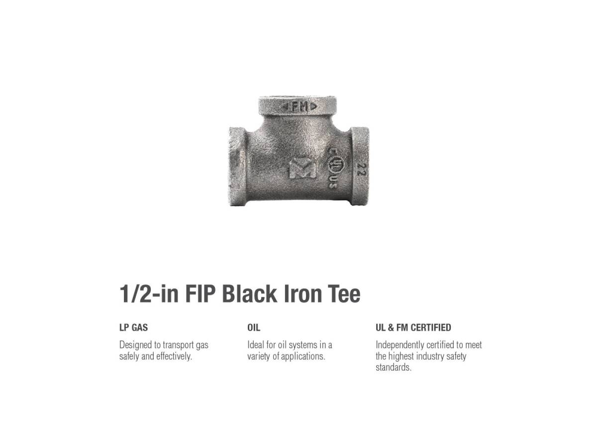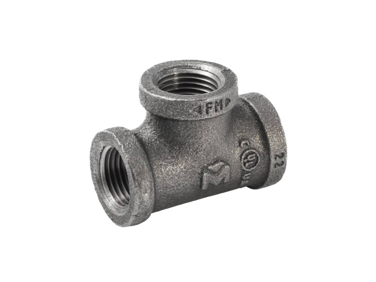 1/2 in. x 1/2 in. x 1/2 in. Malleable Iron Black Pipe Tee Fitting - Threaded, 1-Pack