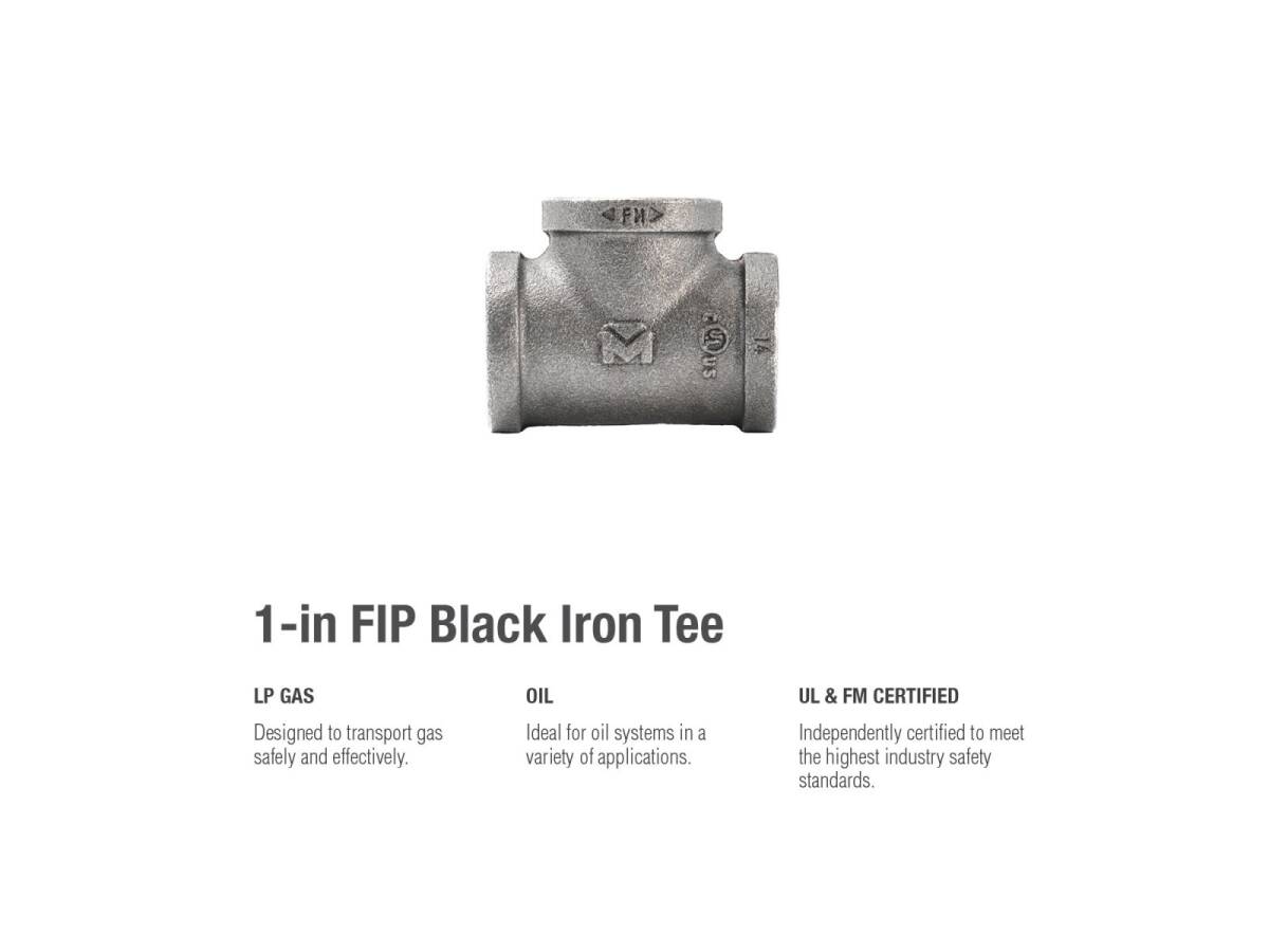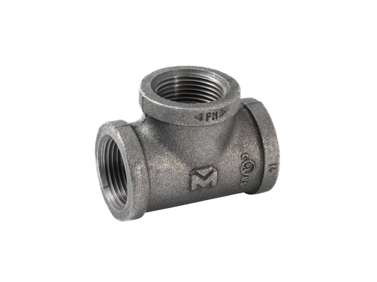 1 in. x 1 in. x 1 in. Malleable Iron Black Pipe Tee Fitting - Threaded, 1-Pack