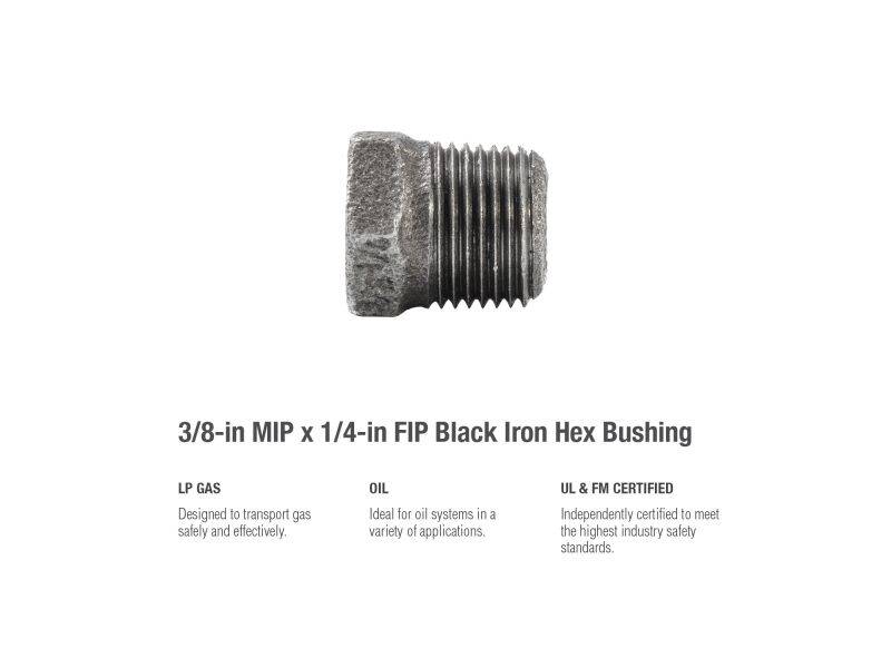 3/8 in. x 1/4 in. MIP x FIP Malleable Iron Black Pipe Hex Bushing Fitting - 1-Pack