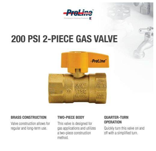 ProLine Series™ 3/4-Inch 2-Piece Gas Ball Valve- provides a safe way to control the flow of gas or liquid through a system. It uses a quarter-turn lever handle for positive on/offoperation, and its two piece design provides multi-directional flow.