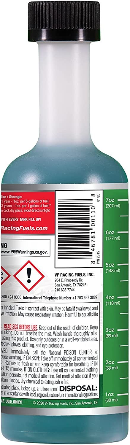 Our fuel stabilizer contains a phase separation inhibitor, eliminating the need to drain fuel before storage. Our technologically advanced formula has a special detergent that cleans gums, varnish, and carbon deposits. It also eliminates spending extra money on high-octane premium pump gas. Our additive is EPA-registered and features a tested and proven anti-corrosion package. The NACE Standards Test for Ferrous Metals uses a 1-5 grading scale to measure the ability to resist corrosion. Both ethanol-free and E10 (10% ethanol) fuel received a 0.7 grade for resisting corrosion. That’s right, less than 1.0. Adding VP Fuel Stabilizer with Ethanol Armor improved the corrosion rating to 5.0-top of the charts! In addition, our stabilizer helps reduce engine heat and extends engine life by lubricating the ethanol in gasoline. This reduces parasitic friction. When you reduce friction, you reduce the amount of heat caused by friction. A camel might love extreme heat; engines, not so much. Another thing to consider is how long it lasts. Our product stabilizes for up to three years (1 oz. per 1 gallon of fuel). By comparison, other major gas stabilizers only work for 12 to 24 months. It’s right there in their product description. Plus, a little goes a long way. One 8 oz. bottle treats up to 80 gallons of gasoline (one ounce per 10 gallons of gas). Research other brands - you'll often find that an ounce of their additive treats five or six gallons of fuel, with some calling for two to three ounces to treat 10 gallons of gas.