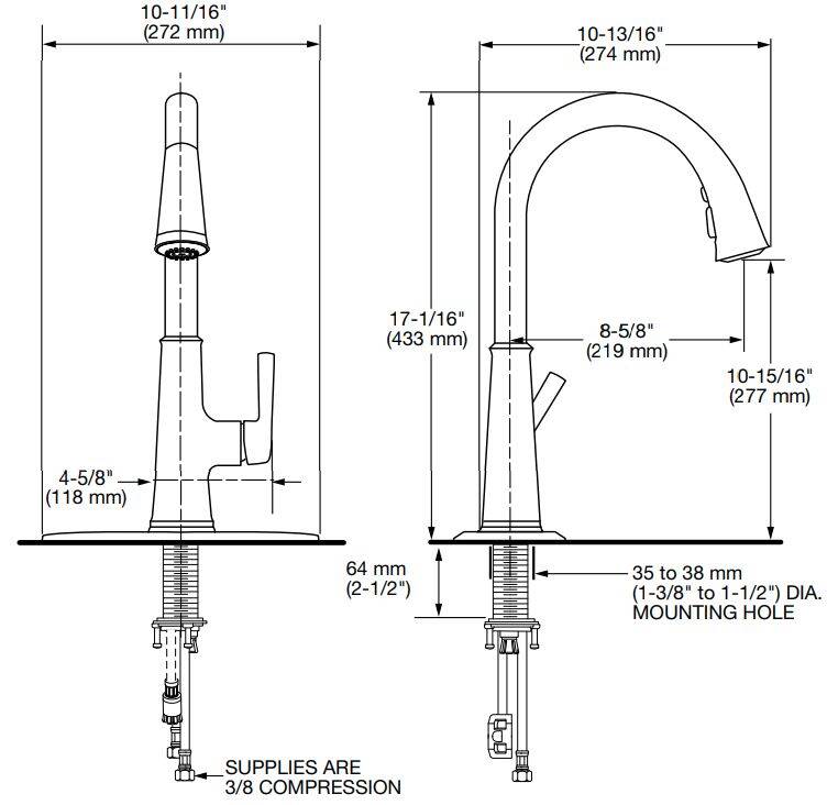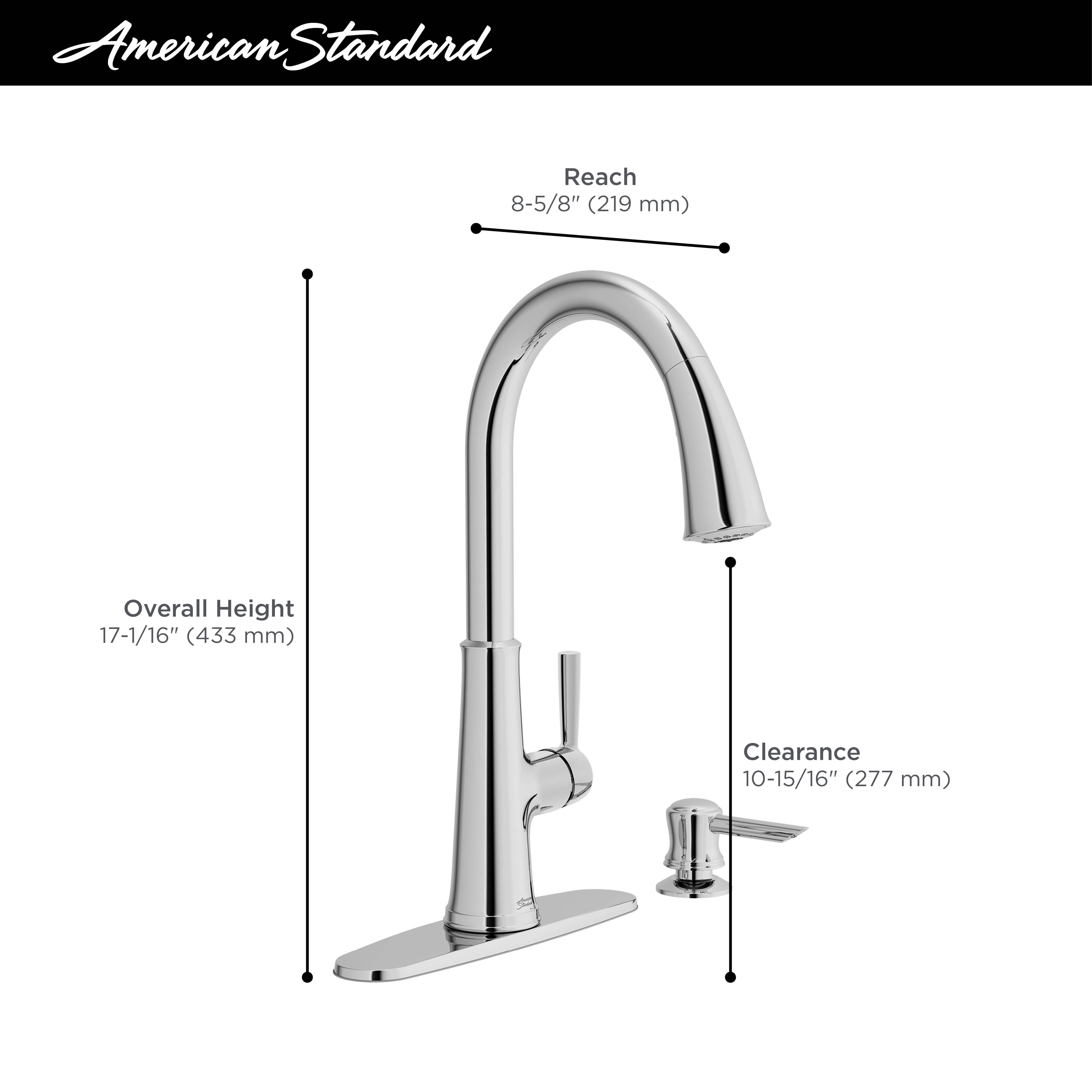 The Maven® Kitchen Faucet with Pull-Down spray head from American Standard combines beauty and dependability in a sleek, contemporary design. Dual-function spray head features a toggle control to easily switch from regular stream for filling pots to spray for rinsing vegetables and cleaning the sink. A handy pause button stops water flow momentarily. Equipped with Re-Trax® to ensure smooth extension and retraction of the spray head, the Maven faucet is an exceptional value that includes matching soap dispenser and deck plate.