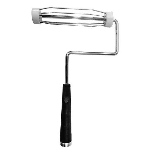 This 7-1/2 inch roller has a plastic handle and a 5 wire cage frame