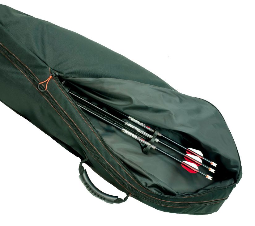 Lightweight and rugged, the lockable case is equipped with an extra-large exterior zippered pocket for storage of arrows, quiver, broadheads, lube, etc. A side-mounted rubber grip handle provides easy transportation. In addition, the case also features two foam-padded adjustable straps for comfortable backpack carry.