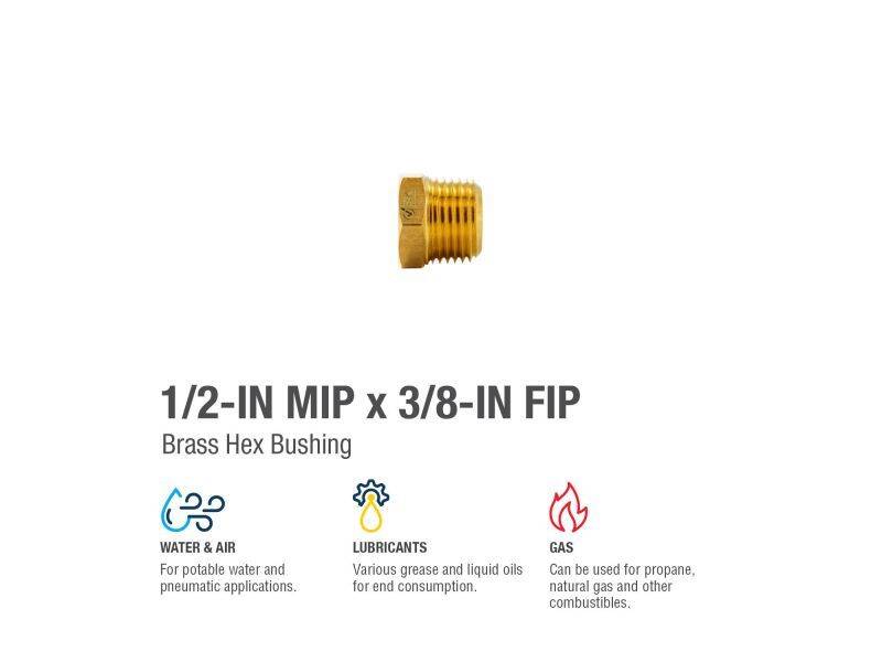 ProLine 1/2 in. MIP x 3/8 in. FIP Reducing Brass Hex Bushing Fitting - Threaded, 1-Pack