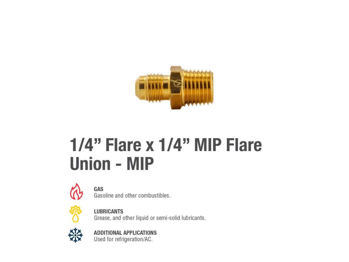 Unions connect two lengths of tubing together, further lengthening the plumbing line. Constructed of lead-free brass, brass flare fittings are ideal for grease, natural gas, and refrigeration/ac applications. The brass construction makes this fitting corrosion-resistant and is able to be used indoors and outdoors. Flare fittings can be used in conjunction with aluminum tubing, brass pipe, copper tubing & steel hydraulic tubing.