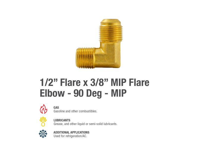 Elbows provide an excellent method of diverting a plumbing line without the risk of causing kinks in the tubing and will convert a flare connection into an IPS connection. Constructed of lead-free brass, brass flare fittings are ideal for grease, natural gas, and refrigeration/ac applications. The brass construction makes this fitting corrosion-resistant and is able to be used indoors and outdoors. Flare fittings can be used in conjunction with aluminum tubing, brass pipe, copper tubing & steel hydraulic tubing.