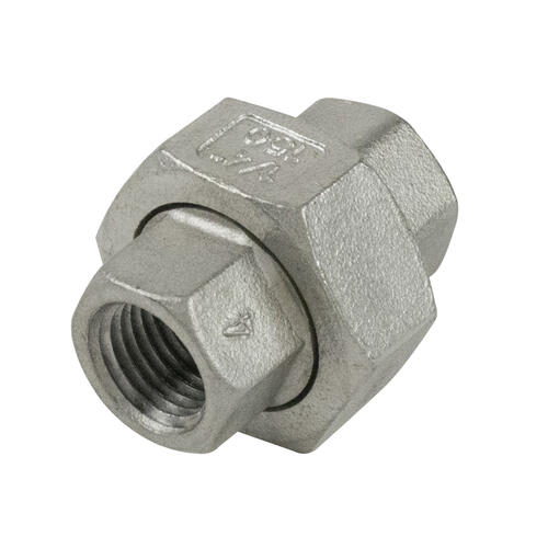 Unions allow for disassembly within an existing pipeline for multiple utility reasons. Steel 304 is a trusted material that supports sustainable building movements due to its recycling ability and is increasingly preferred for use in construction. This fitting can withstand a wide range of corrosive materials and chemicals and can be easily cleaned for hygienic environments. A unique feature of stainless steel is the increased strength and durability of this fitting compared to most common brass fittings.