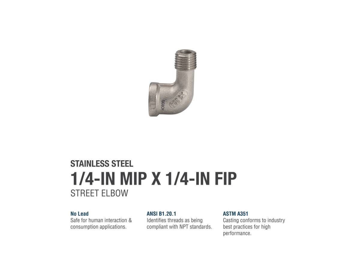 ProLine 1/4 in. MIP x 1/4 in. FIP Stainless Steel Street Elbow Fitting, 90° - Threaded, 1-Pack
