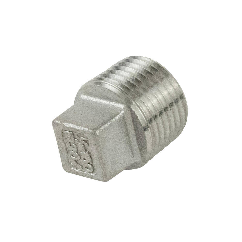Plugs close the ends of any fittings or nipples and can prevent debris from entering the plumbing system. Steel 304 is a trusted material that supports sustainable building movements due to its recycling ability and is increasingly preferred for use in construction. This fitting can withstand a wide range of corrosive materials and chemicals and can be easily cleaned for hygienic environments. A unique feature of stainless steel is the increased strength and durability of this fitting compared to most common brass fittings.