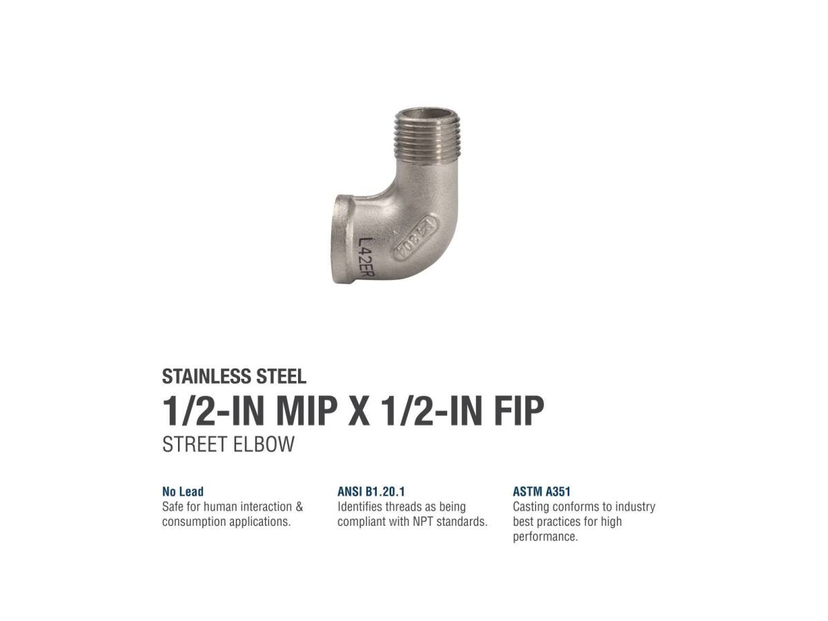 ProLine 1/2 in. MIP x 1/2 in. FIP Stainless Steel Street Elbow Fitting, 90° - Threaded, 1-Pack