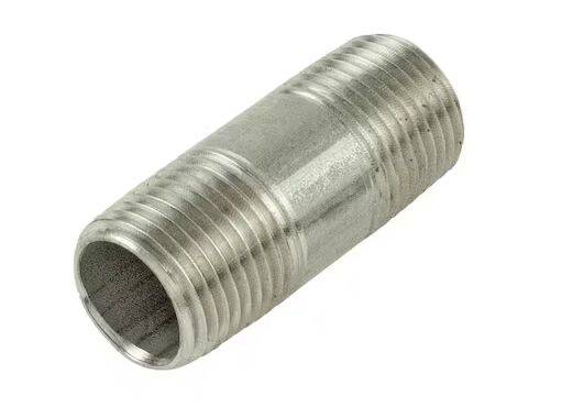 Nipples provide a secure method of transporting mediums between fittings. Stainless Steel 304 is a trusted material that supports sustainable building movements due to its recycling ability and is increasingly preferred for use in construction. This fitting can withstand a wide range of corrosive materials and chemicals and can be easily cleaned for hygienic environments. A unique feature of stainless steel is the increased strength and durability of this fitting compared to most common brass fittings.