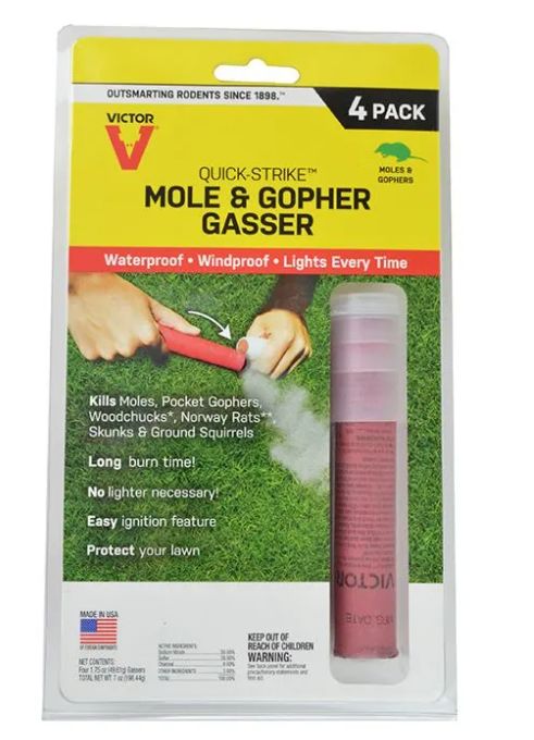 Are you tired of nuisance animals digging up your lawn and destroying your yard? Victor Quick-Strike Mole & Gopher Gasser is here to help! Quick-Strike is designed to kill several problematic pests, including moles, gophers, woodchucks, Norway rats, skunks and ground squirrels. The compact size allows for easy placement in underground tunnels where many of these pests live. Plus, this pack includes four gasser sticks to eliminate your problem in no time.
