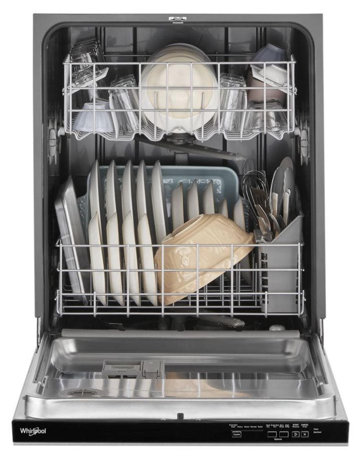 Clean dishes with a 55 dBA quiet dishwasher. Three 5ib Cup Shelves free up extra space and a Boost Cycle provides extra effort for cleaning up stubborn messes. This dishwasher includes an Extended Dry Option to elevate drying performance and a Triple Filtration Wash System that filters food particles and cleans the water between wash stages.