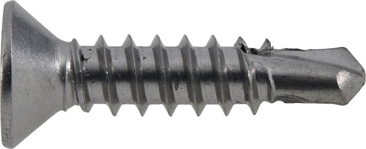 Self drilling screws possess a drill point enabling the screw to create its own hole in thin gauge steel. The sharp threads create their own mating thread when drilled into the material. Also in Hillman assortment 37413 label 37412