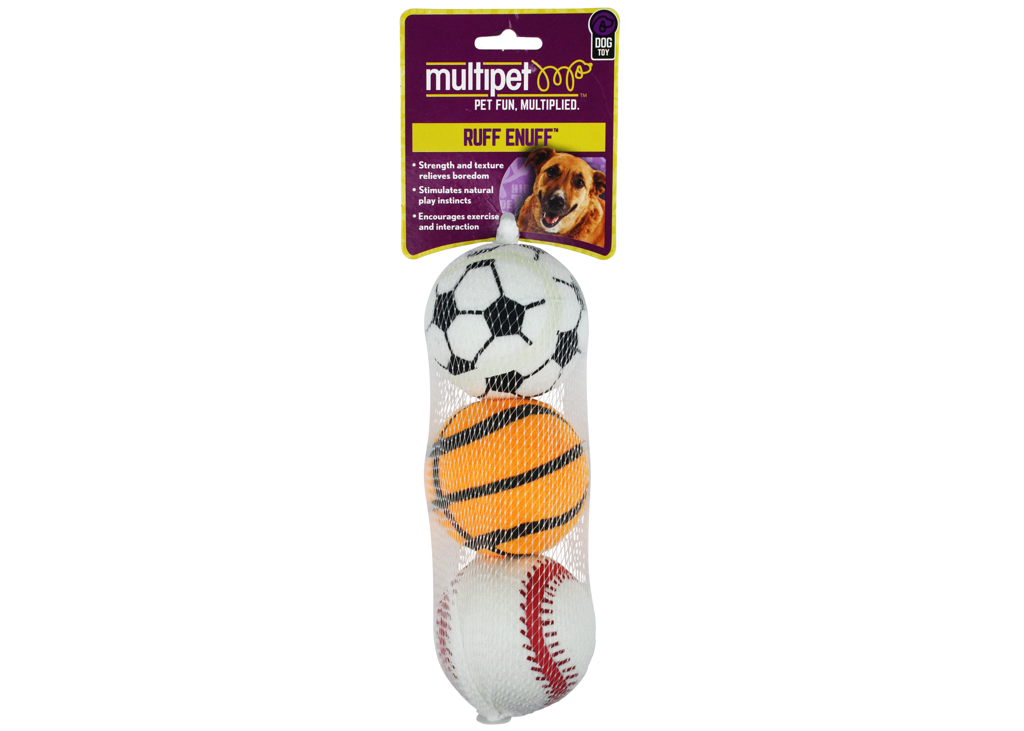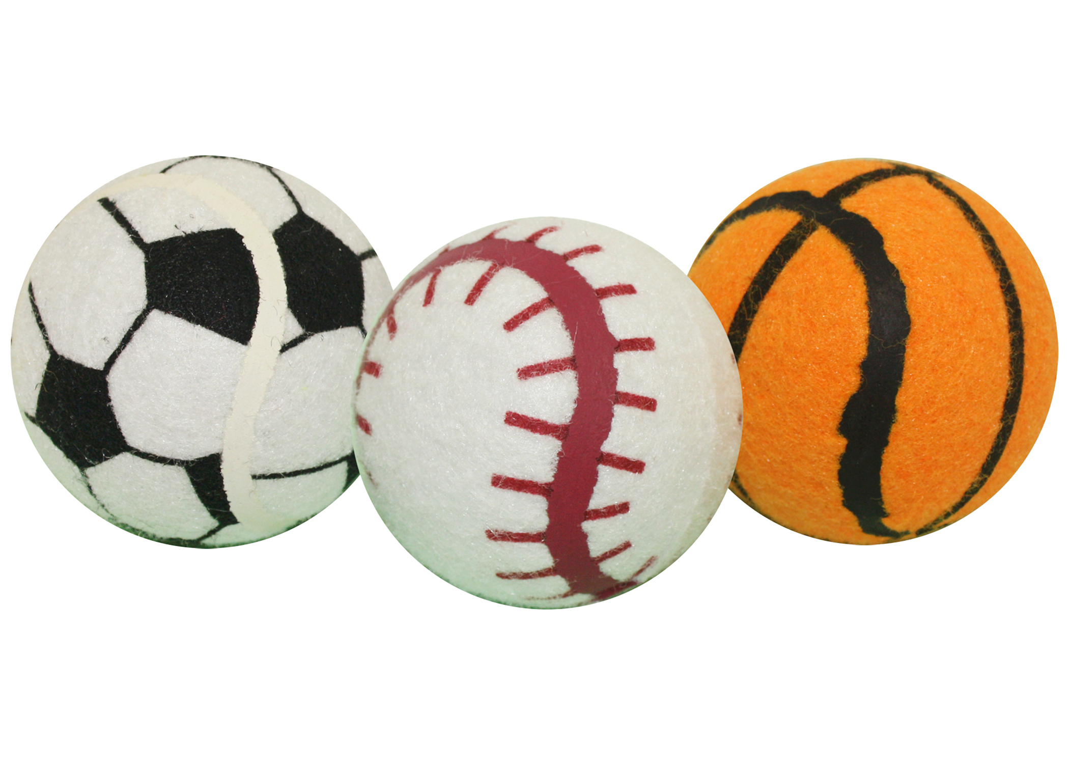 Play Ball! Sport Tennis Balls dog toys are great for getting your pet in the game. Each of these tennis balls are designed to replicate balls from a different sport: soccer, baseball, and basketball. Available as a 3-pack, Sport Tennis Balls come in a mesh bag to keep you and your pet set for any game.