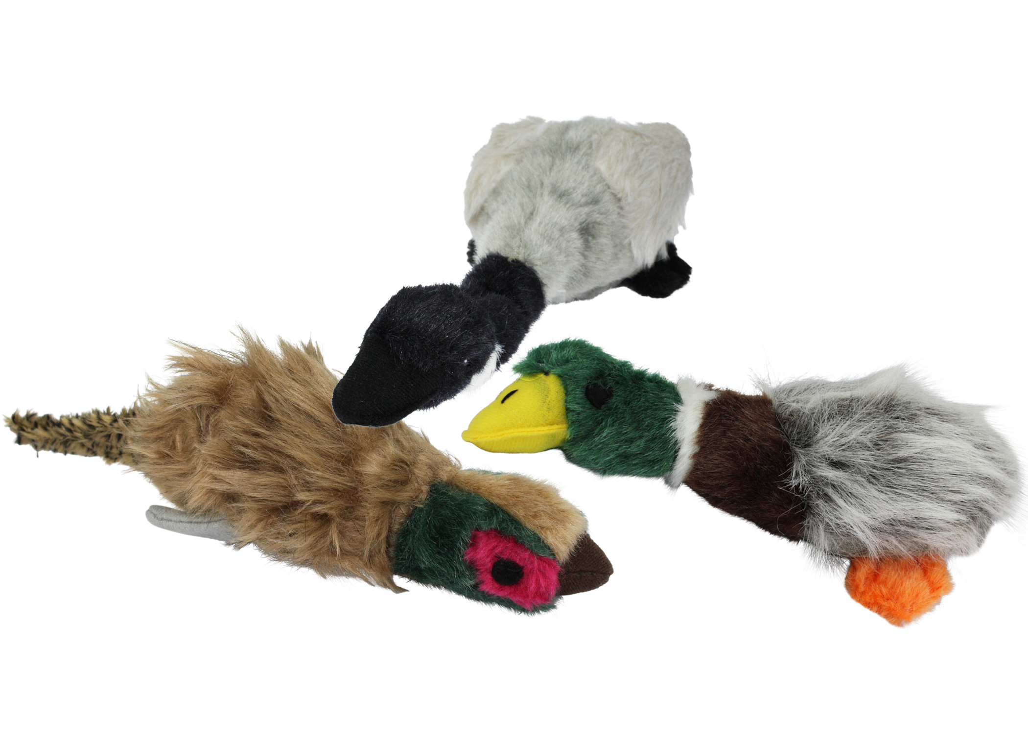 Migrators may travel south in the winter for warmer weather, but these dog toys are sure to stay put with your pup! Migrators have a realistic design and voice box, making them the perfect squeaky companion for your pet. Available in Canadian Goose, Mallard, and Pheasant varieties.