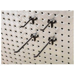 John Sterling HEAVYWEIGHT™ diamond plate shelving and pegboard system is built to withstand the tough demands of workshop or garage. Heavy-duty peg hooks in four styles feature thick steel wire construction and black epoxy coat finish to stand up to the abuse of frequent use. Choose from dual, single, loop or small J and L hooks for durable, versatile storage options using HEAVYWEIGHT™ steel pegboard.