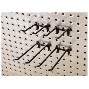 John Sterling HEAVYWEIGHT™ diamond plate shelving and pegboard system is built to withstand the tough demands of workshop or garage. Heavy-duty peg hooks in four styles feature thick steel wire construction and black epoxy coat finish to stand up to the abuse of frequent use. Choose from dual, single, loop or small J and L hooks for durable, versatile storage options using HEAVYWEIGHT™ steel pegboard.