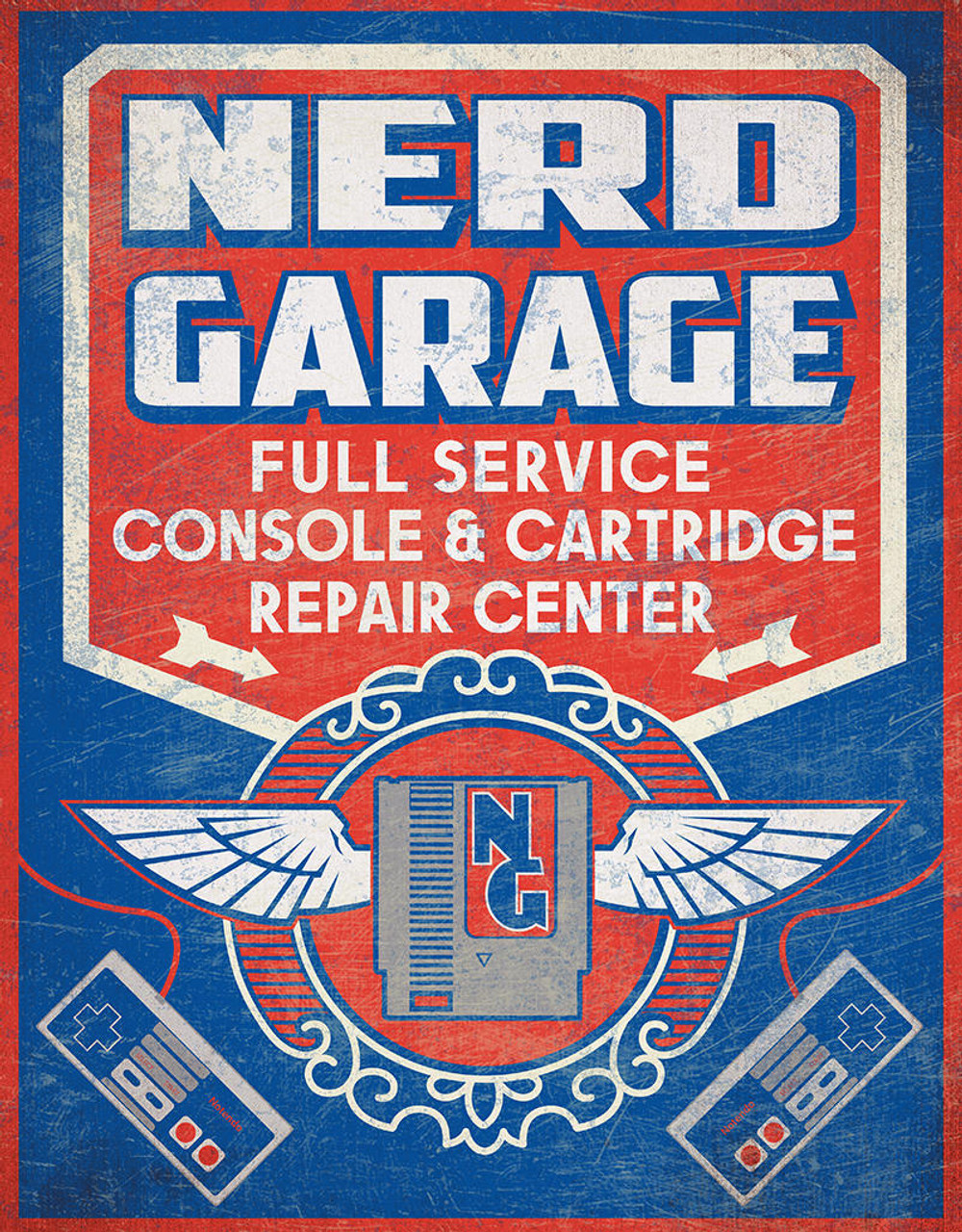 12-1/2 X 16-Inch Nerd Garage- "Full Service Console & Cartridge Repair Center" Tin Sign