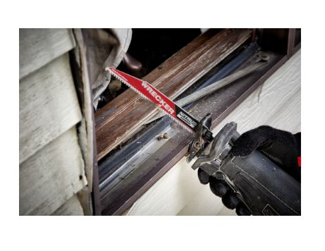 Our WRECKER™ with NITRUS CARBIDE™ SAWZALL® blade for multi-material cutting is the next generation of carbide teeth technology. Our NITRUS CARBIDE™ technology allows this blade to be the fastest cutting and longest life multi-material blade on the market. The blade features a 6TPI design for best material versatility and the ability to cut materials from wood with nails and screws to thick metals. Our blade delivers 2x life versus carbide teeth blades eliminating the need for blade changes when cutting a variety of materials. Our carbide sawzall blade is available in 6 in, 9 in and 12 in blade lengths. It is the ideal blade for demolition and remodeling jobs.