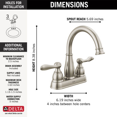 The Windemere™ Bath Collection brings timeless elegance and gentle curves to complement any bath setting. Delta® WaterSense® labeled faucets use at least 20% less water than the industry standard — helping you save water without compromising performance. You can install with confidence, knowing Delta products are backed by our Lifetime Limited Warranty.