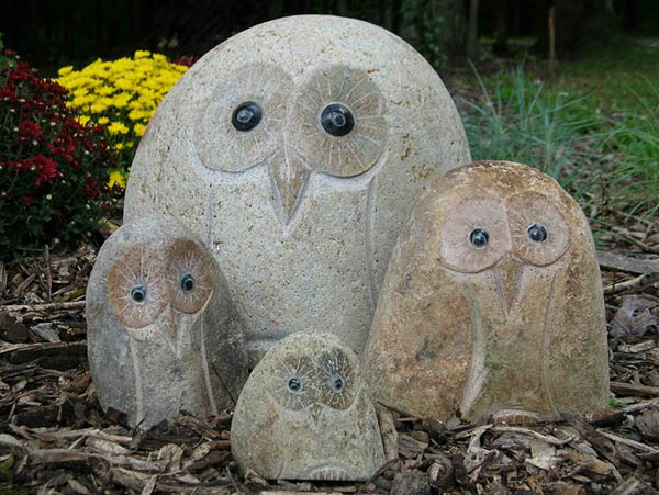 • These adorable one-of-a-kind carved stone owls were created after seeing similar "species" perched on the fence of an old farmhouse.