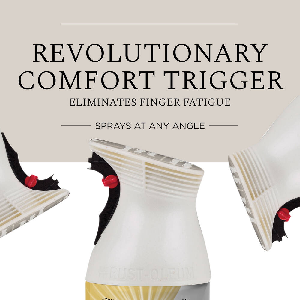 Rust-Oleum Universal Spray Paint provides a classic look on virtually any surface. This paint and primer in one provides excellent coverage and a durable protective coat with maximum adhesion on even the most demanding substrates. The patented trigger nozzle also eliminates finger fatigue and protects against dripping from any angle.