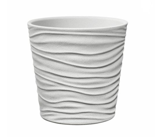 5-1/2 in White Sonora Indoor Ceramic Pot. 6 pots per tray must order in tray quantities. 100% waterproof. Made in Germany with 100% rainwater and natural native clay. No drainage holes so no worry about damage to furniture. Just drop in – no need to replant.