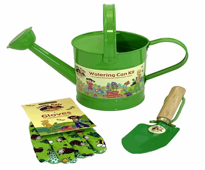 Includes Metal Watering Can, Gloves, Hand Trowel