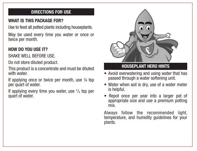 Use to feed all potted plants, indoors and outdoors, including houseplants. May be used every time you water or once or twice per month.