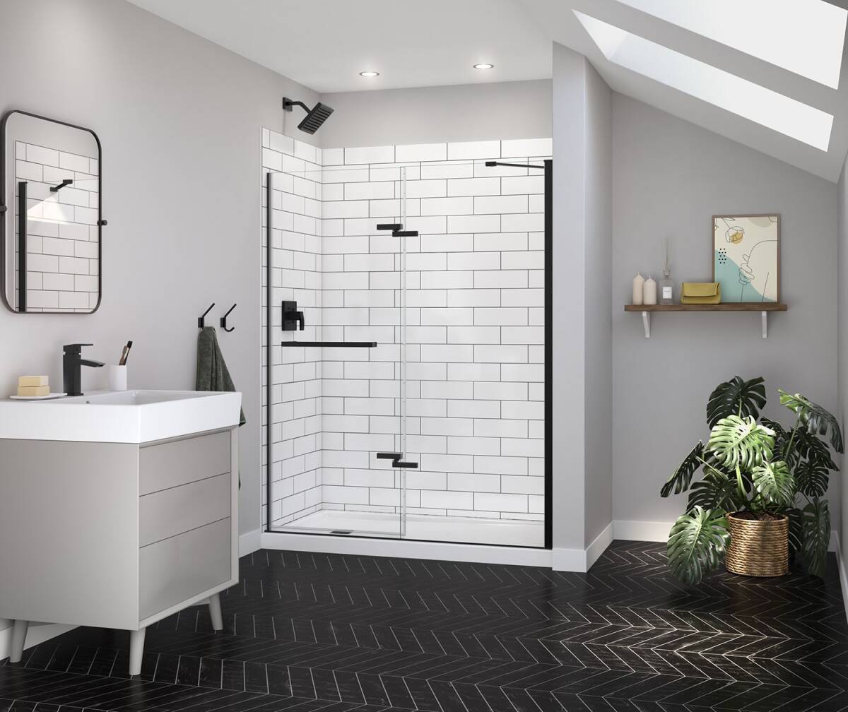 MAAX® Pivot Shower Door for Alcove Installation with Clear glass in Matte Black