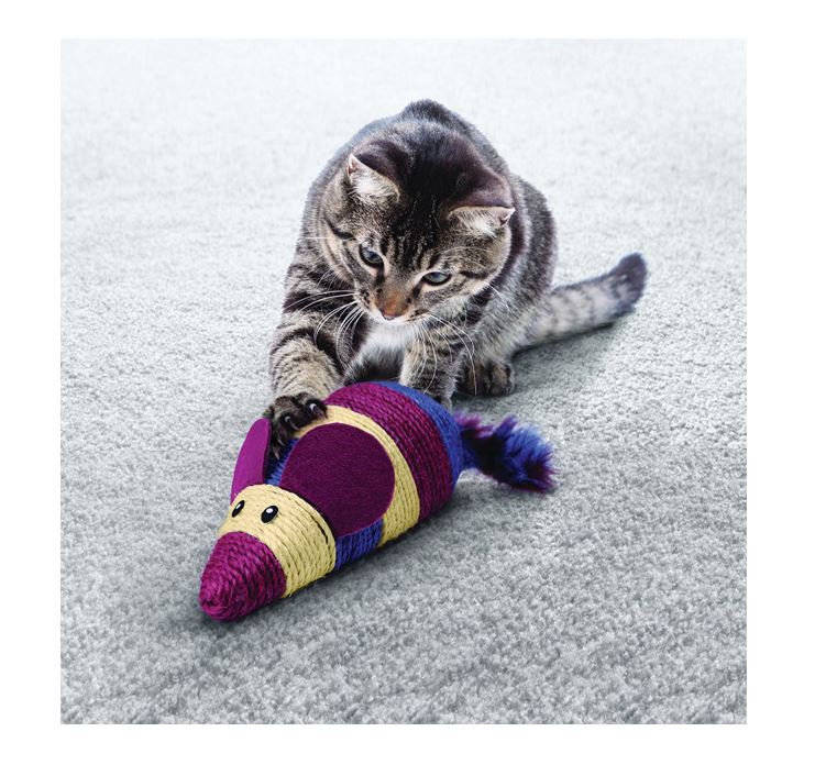 Ignites multiple senses stimulating kitty’s natural desire to pounce, wrestle, scratch and knead promoting active play. The Scratch Mouse’s fun, oversized toy and twisted boa tail encourage wrestling and active exercise while the KONG North American Premium Catnip and rattle sounds entice play. Varied rope textures promote natural scratching instincts.